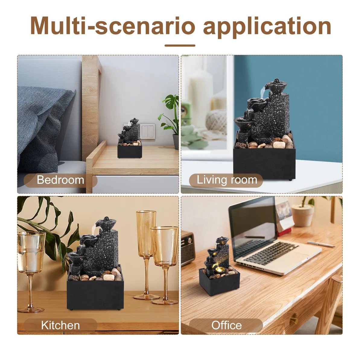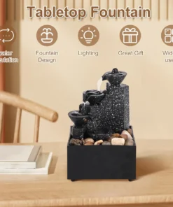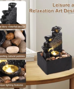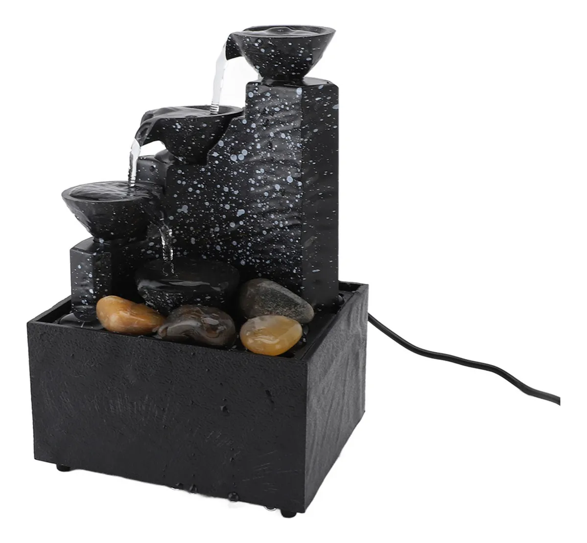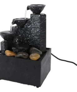 La tenue iluminación LED 💡 se refleja en el agua en movimiento, creando un espectáculo de luces y sonido hipnótico. Acompañada de guijarros naturales, transforma cualquier espacio en un rincón zen inmediatamente.