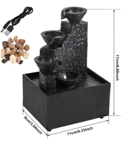 Con sus perfectas medidas de 17 x 11 x 9 cm, esta encantadora fuente encuentra su espacio ideal en cualquier rincón: tu escritorio 📚, una mesa de centro ☕, tu jardín 🌿 o incluso el baño 🛁. Su tamaño mini te permite crear un oasis de paz sin ocupar espacio (¡revisa las medidas! 📏).