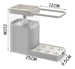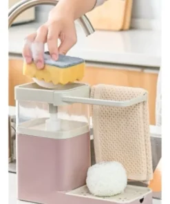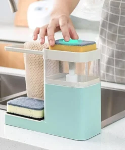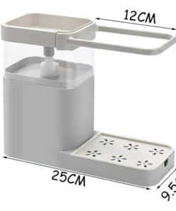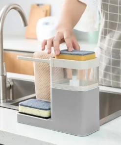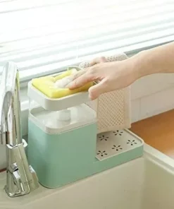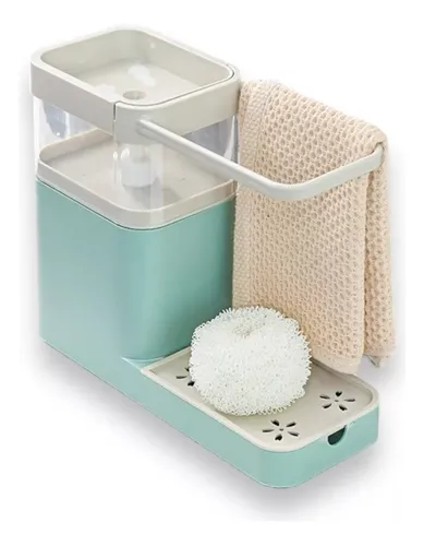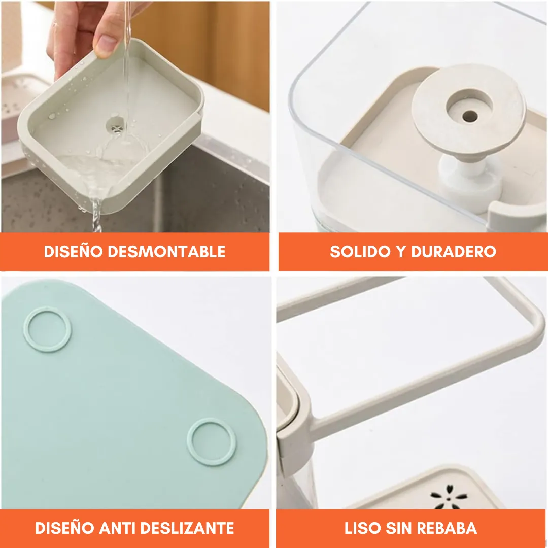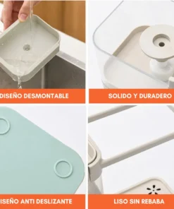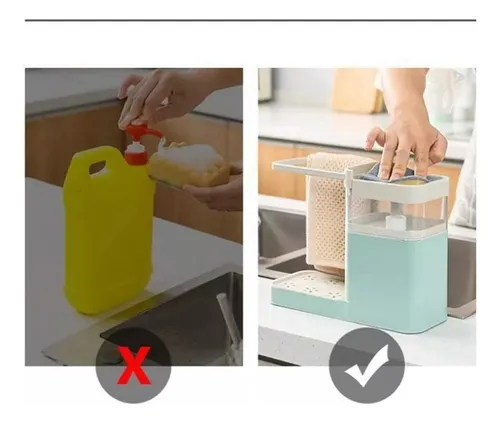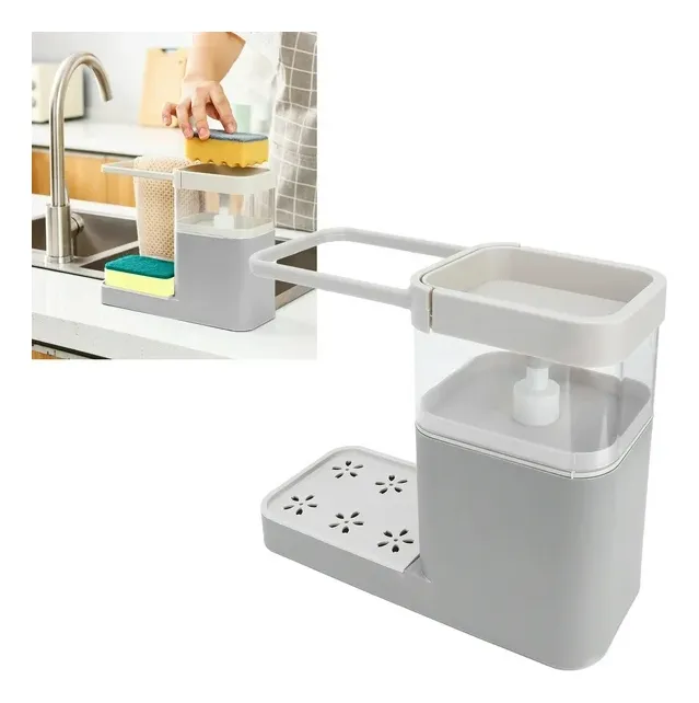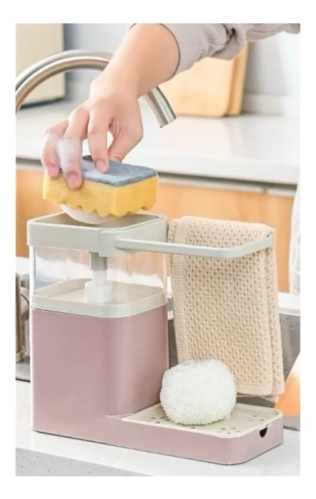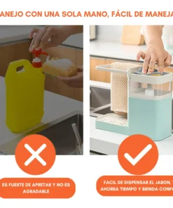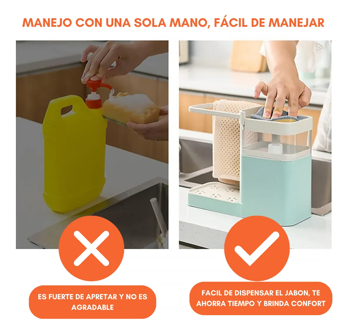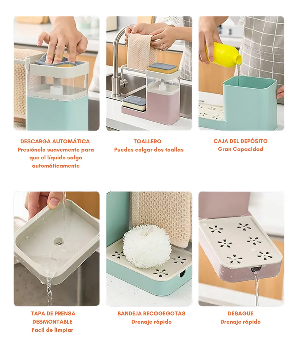 ✔ 🧴 3 EN 1 – Dispensador de jabón + porta esponja + organizador ¡Todo en uno!