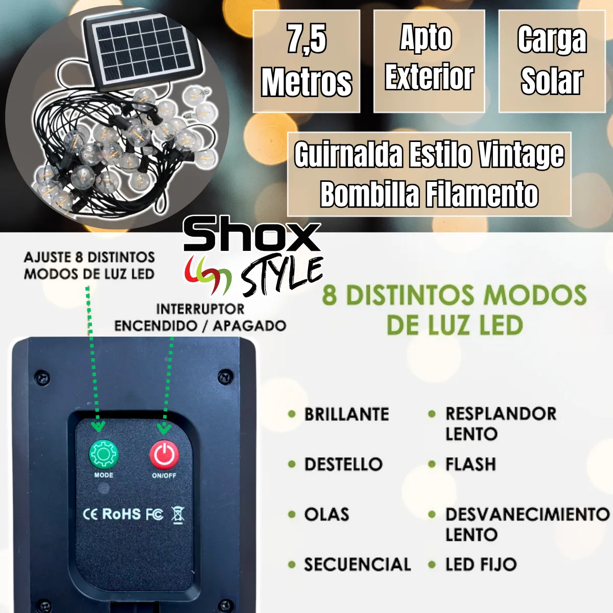 ¿Sueñas con transformar tu jardín, terraza o eventos en un lugar cálido y mágico? ¡Esta guirnalda solar vintage es tu respuesta! 🌙💫