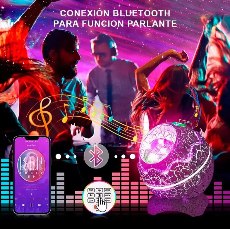 🎵 Parlante Bluetooth y ruido blanco: ✅ Altavoz Bluetooth integrado — conectá tu celular y reproducí lo que quieras 📱🎶 ✅ Las luces parpadean y cambian al ritmo de la música 🕺💃 ✅ Efecto discoteca aplaudiendo 👏🎉 ✅ Incluye sonidos de ruido blanco incorporados 😴🌙