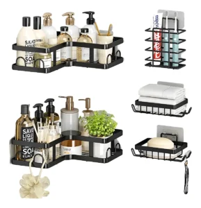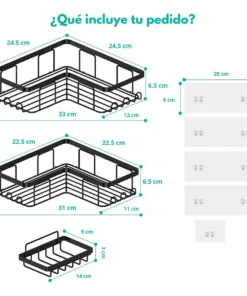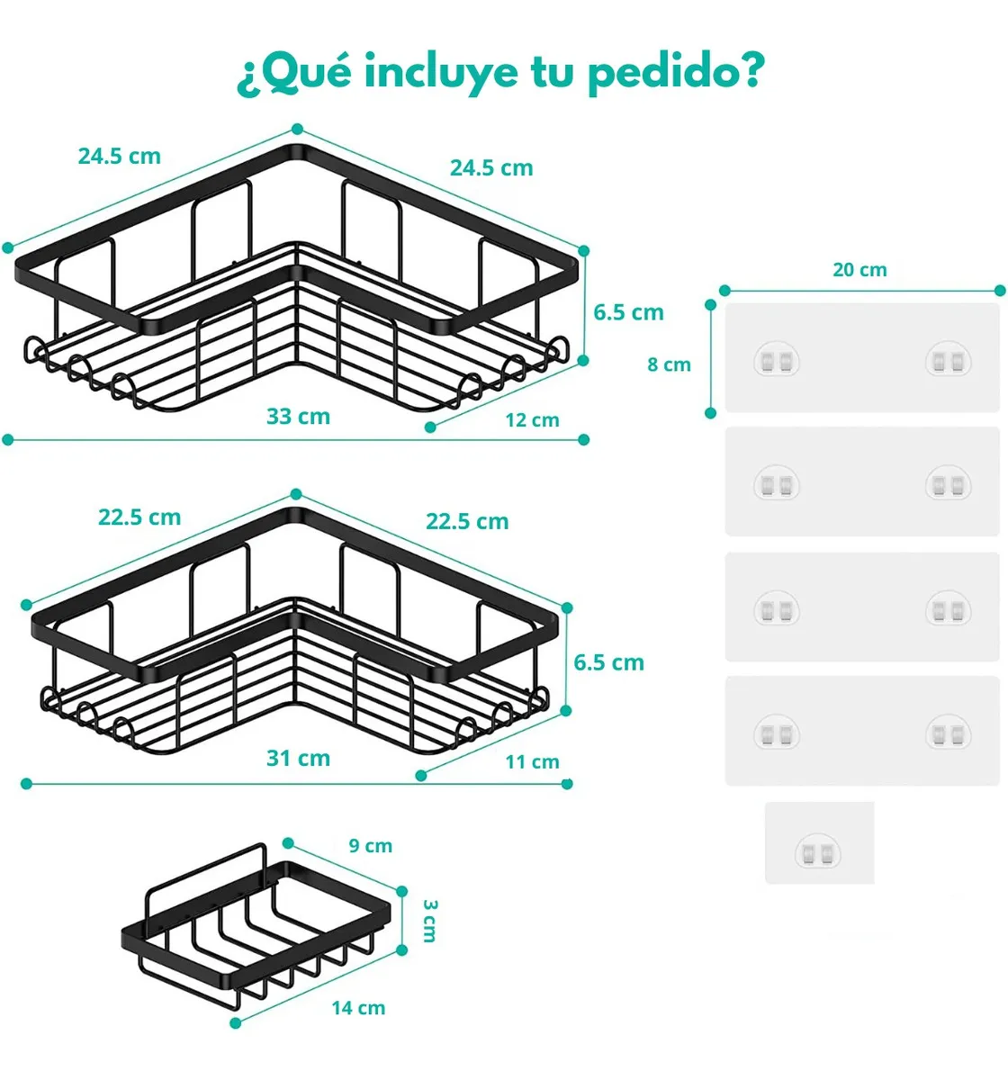 🌟 Mejora tu rutina diaria en el baño con nuestro Set Esquinero Organizador en . 🖤 Diseñado para maximizar el espacio en tu ducha, este set de 5 piezas es la solución IDEAL para mantener tus productos de baño siempre a mano, de manera organizada y sofisticada. 💎