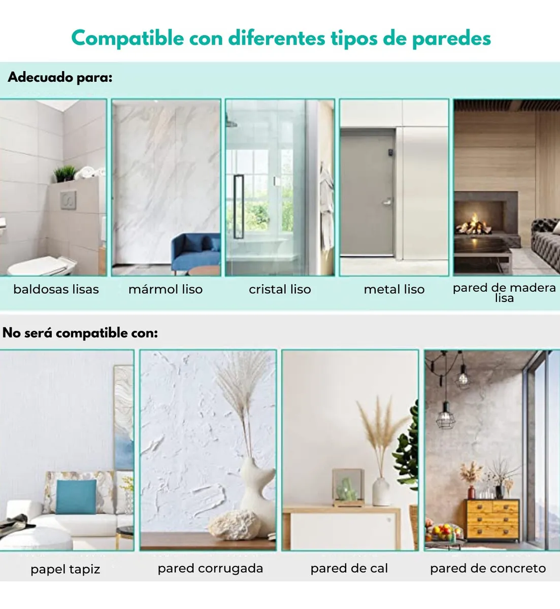 Adecuado para varias superficies: Azulejos lisos, mármol, vidrio templado, pared de madera y metal sólido. ✅