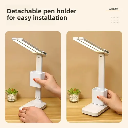 Esta lámpara de escritorio LED plegable es la combinación perfecta de diseño ultra moderno 🎨, funcionalidad inteligente 🧠 y luz regulable perfecta. Su brazo articulado se mueve como tú quieras y sus dos cabezas iluminan tu espacio de manera uniforme. ¡Más que una lámpara, es tu herramienta para enfocarte! 🔍