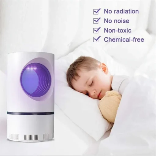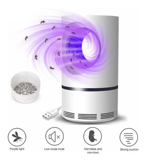🌀 Tecnología de Succión Silenciosa: Un ventilador interno crea una succión potente pero silenciosa (<30db) que atrapa a los insectos sin molestias. ¡Dormirás como un bebé! 😴